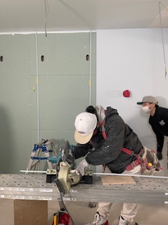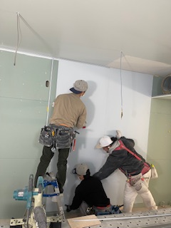 サイズに合わせて丁寧にボードを切ったりしていて